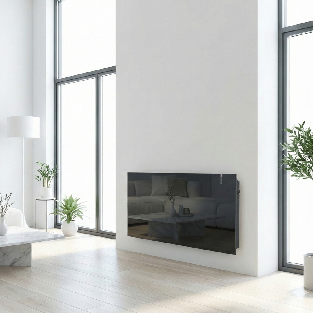 Elegancia a účinnosť. Produktová rodina Atherea je náš vrcholový model, postavený na základoch modelu KYOTO, no v tomto prípade sme vyhrievaciu plochu nahradili estetickým skleneným čelným panelom. Vďaka extra tenkému prevedeniu sa panely Aetherea „prilepia“ k stene a decentne pozdvihnú atmosféru štýlovej obývačky.