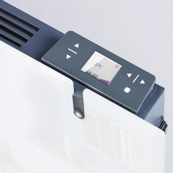 Spoznaj náš najnovší a najpresnejší samoučiaci termostat. Termostat vykurovacích panelov Aetherea zaznamenáva tvoj pohyb, naučí sa, kedy si doma a kedy potrebuješ trochu extra komfortu. Teplotu v miestnosti meria a reguluje s presnosťou na desatiny. Termostat je umiestnený v pravom hornom rohu panela, no meranie teploty prebieha dole, pri nasávaní spätného vzduchu.
